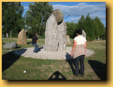 Die statische Energie der Steine, vom Gletscherwasser über Jahrtausende geformt, stehen da und nehmen die vom Menschen an den Stein gegebene Energie in sich auf und stellen so die Beziehung zwischen Mensch und Kunstwerk her.